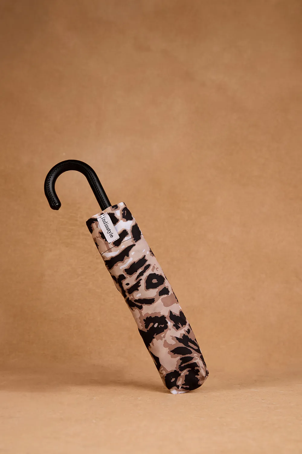 Paraguas con estructura plástica y mango circular.